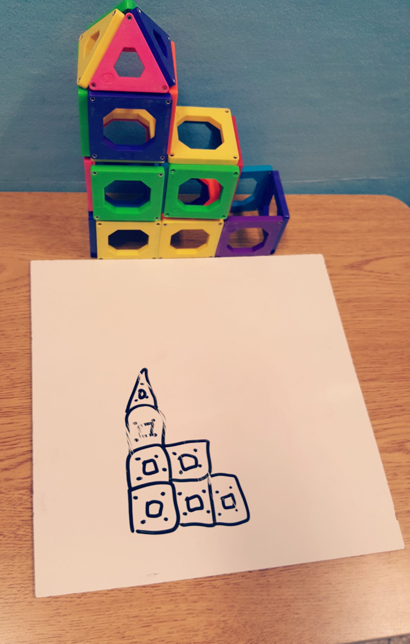 One of the challenges children had was that their picture was 2 dimensional, but they were building in 3D. As long as their building resembled their drawing, we called it a success.