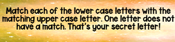 Players begin matching each of the upper case letters with the same lower case letter. However, one of the letter is missing. Once players complete the alphabet, they will find that the letter O does not have a match.