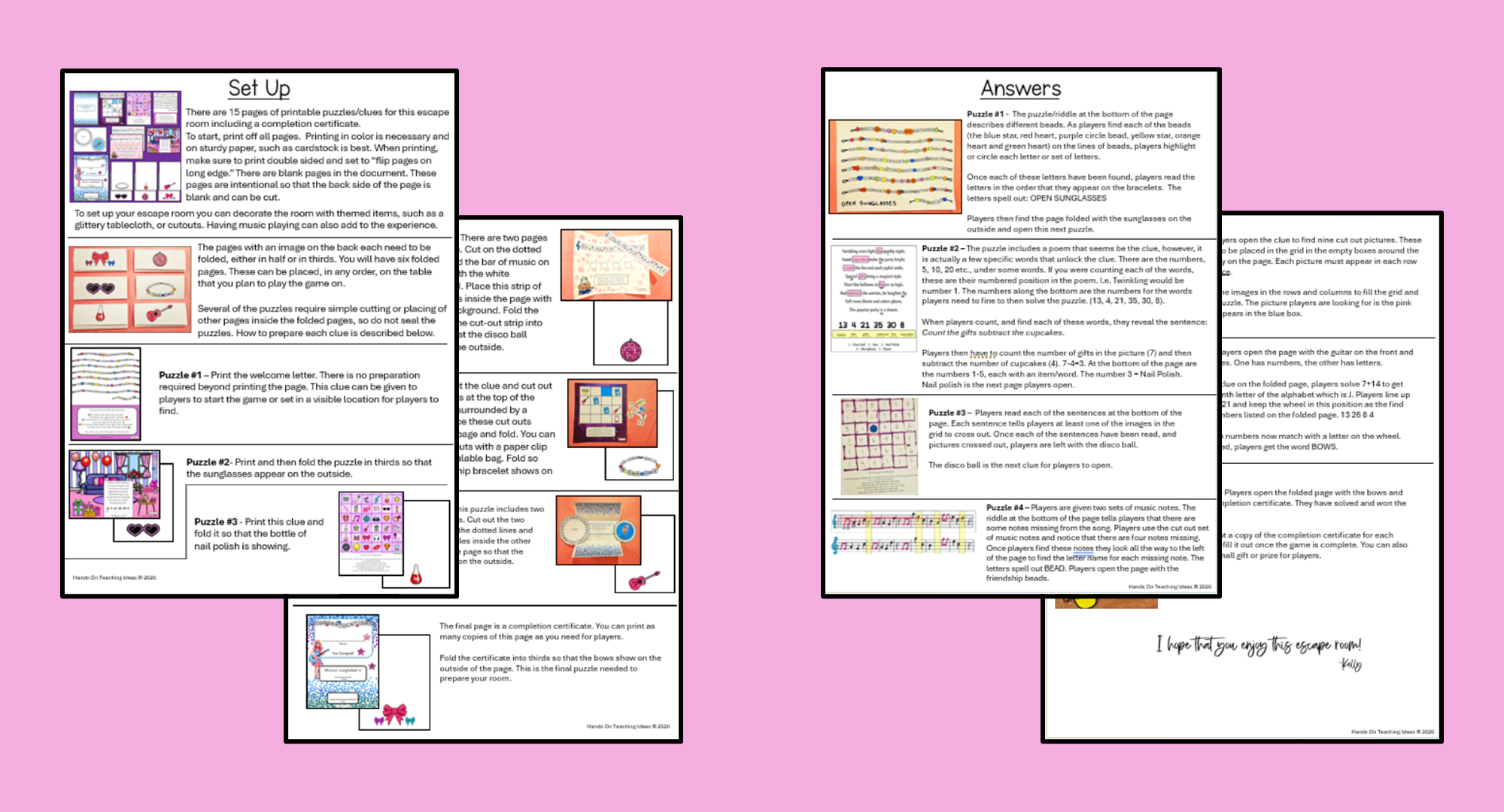 Please note that the puzzles included in this resource are available for free for subscribers. This resource includes the printable set up instructions and puzzle solutions for anyone who prefers a hard copy to make set up and monitoring the game easier.
